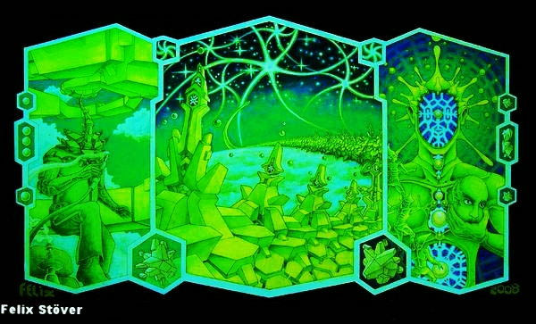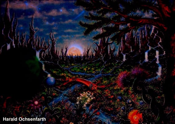 Schwarzlichtkunst-Ausstellung Sinneswandeln, 01.11.05 - 31.01.06, Jägerklause, Grünberger Str. 1, Berlin-Friedrichshain