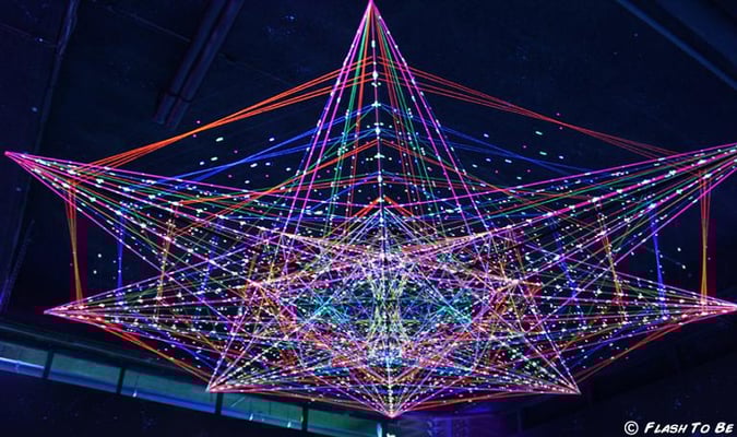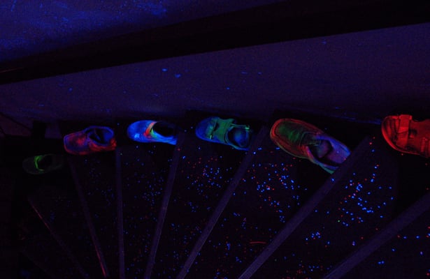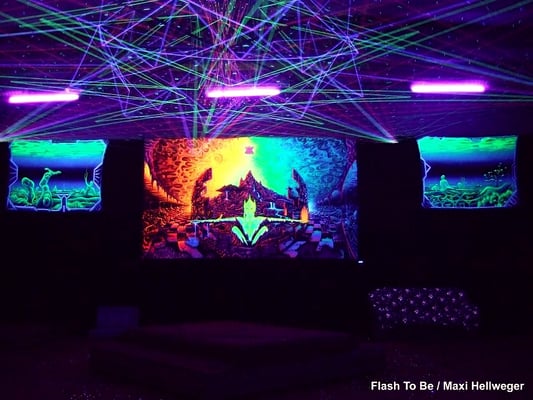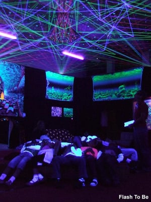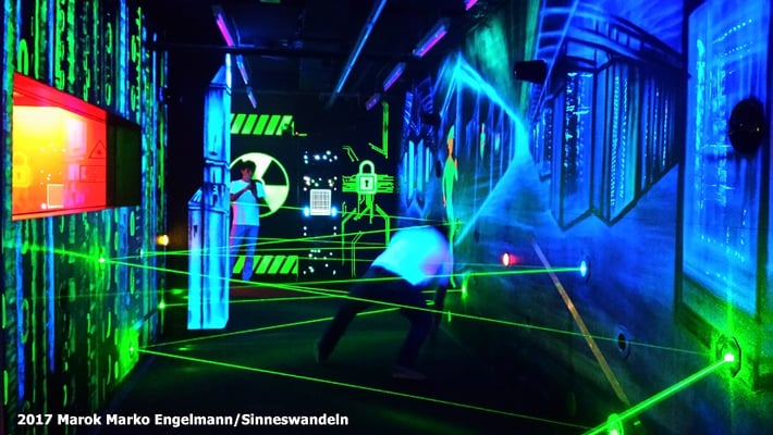 Schwarzlicht-Gestaltung des Laser-Parcours im