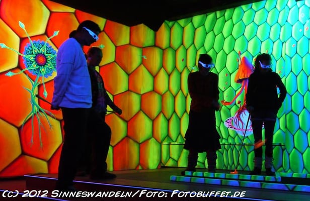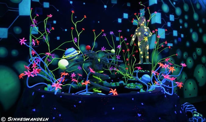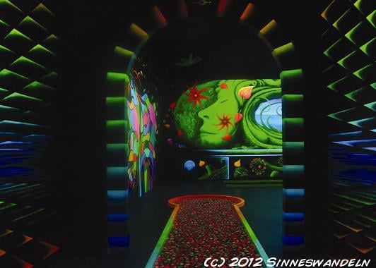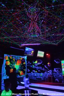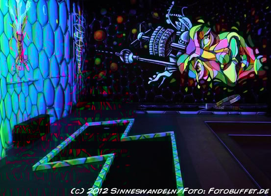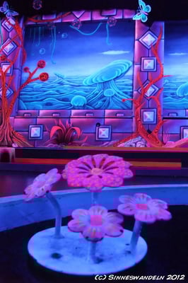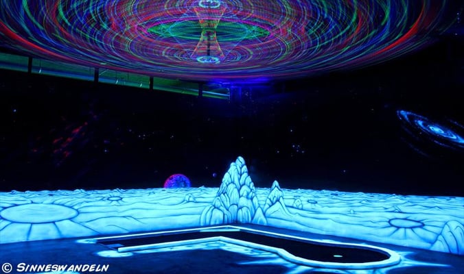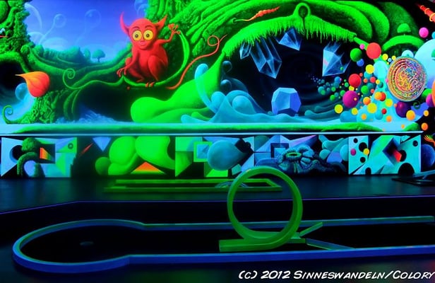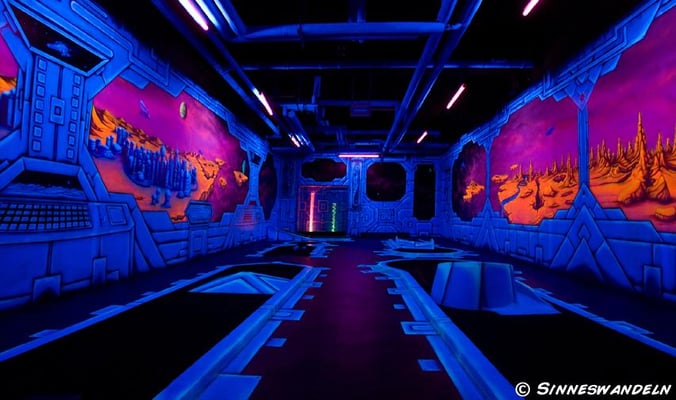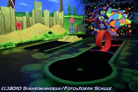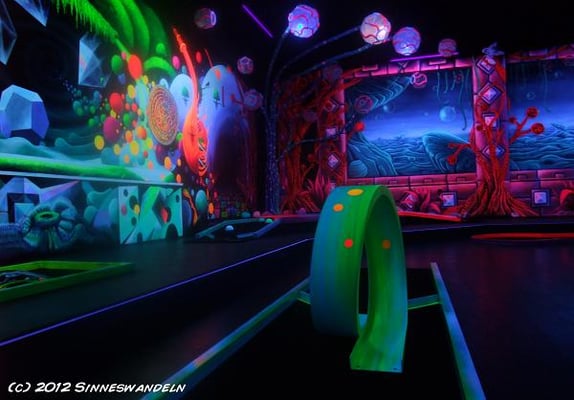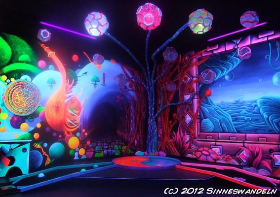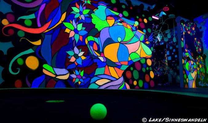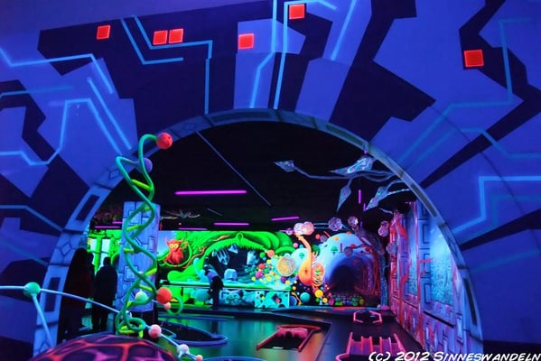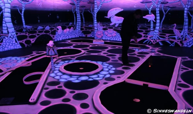 Schwarzlicht-Minigolf in Berlin, gestaltet von Sinneswandeln